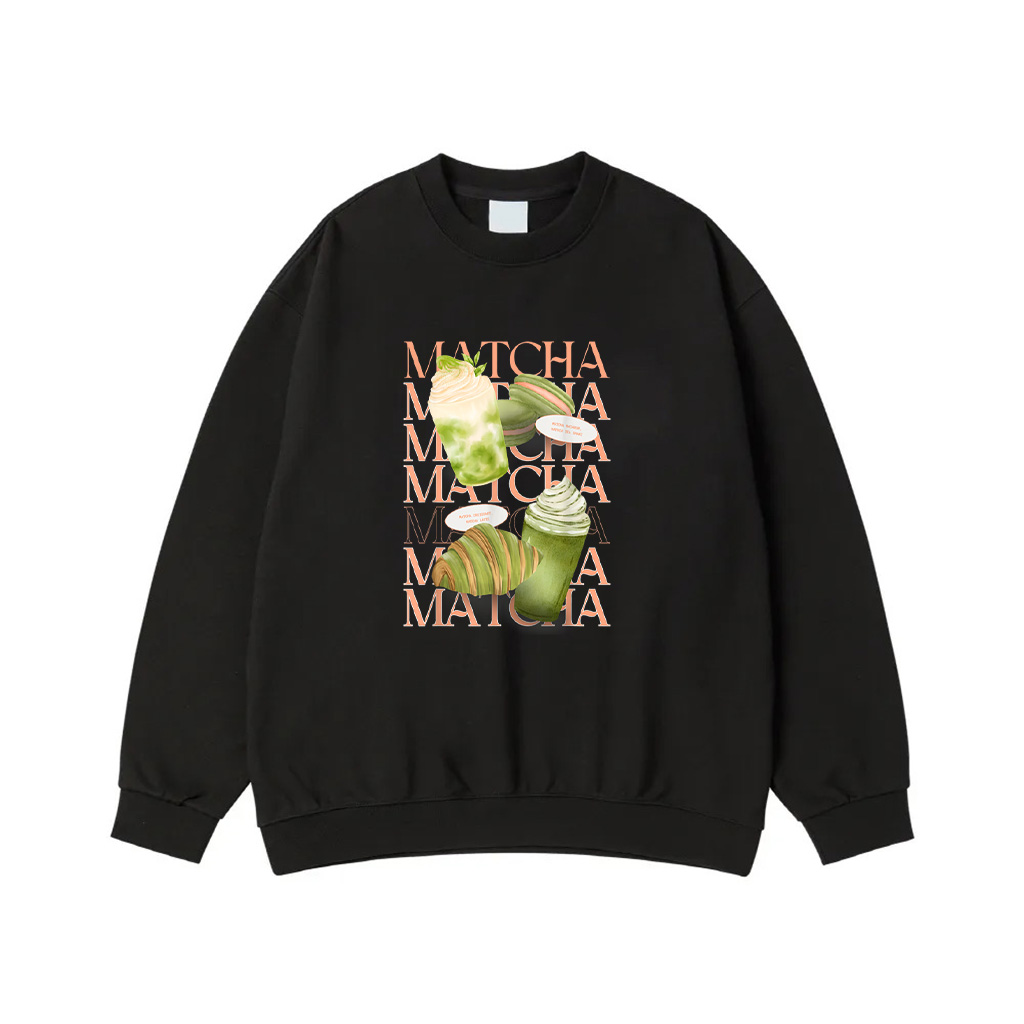 Matcha Graphic Macaron Croissant Matcha Latte Sweatshirt